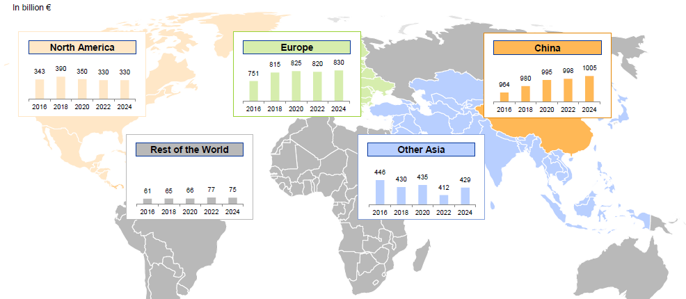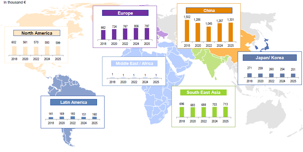 Sales in China will show a further growth within the next years. Chinese sales will be higher than the combined sales of the rest of Asia and North America