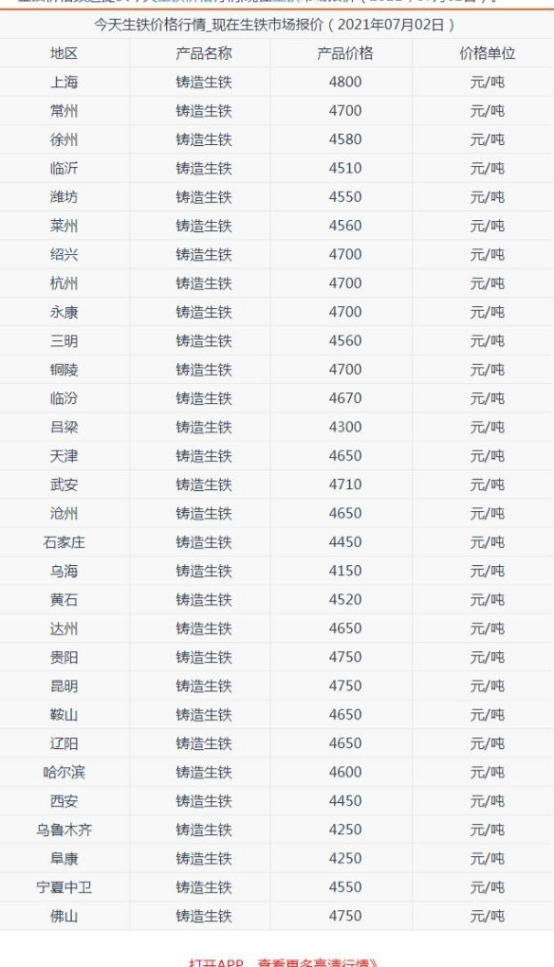 据诸城开源铸造有限公司了解,6月28日国内生铁市场稳中偏弱。据相关平台监测数据显示,炼钢生铁(L10):唐山地区报4130元,比上一交易日持平;翼城地区报4270元,比上一交易日持平;临沂地区报4250元,比上一交易日跌70元。铸造生铁(Z18):翼城地区报4640元,比上一交易日持平;徐州地区报4600元,比上一交易日跌50元;淄博地区报4600元,比上一交易日持平。