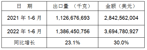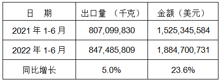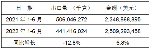 表2:2022年1-6月同比出口情况