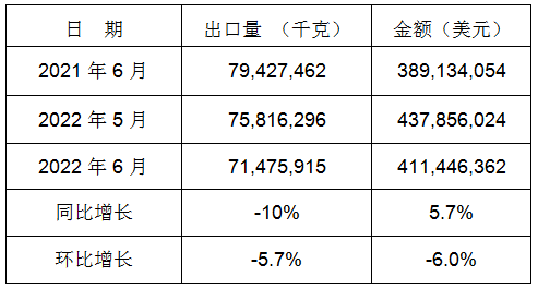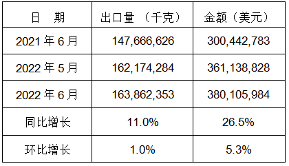 表6:2022年6月同比、环比出口情况