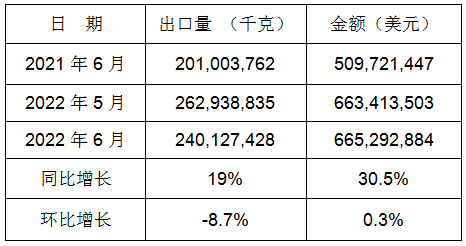 表8:2022年6月同比、环比出口情况